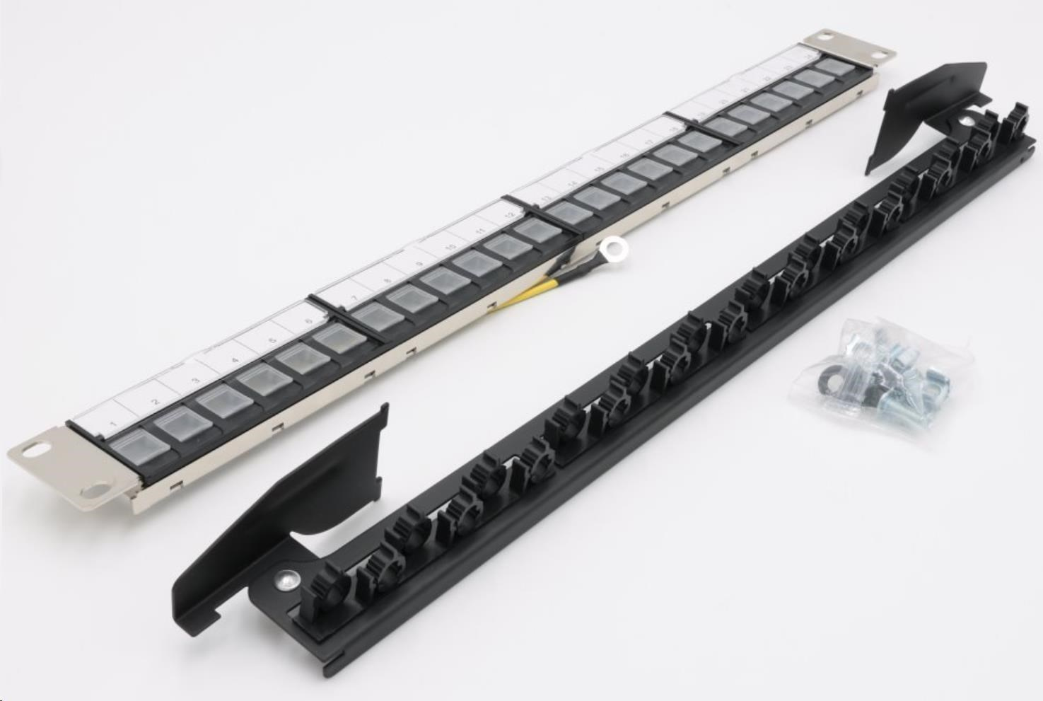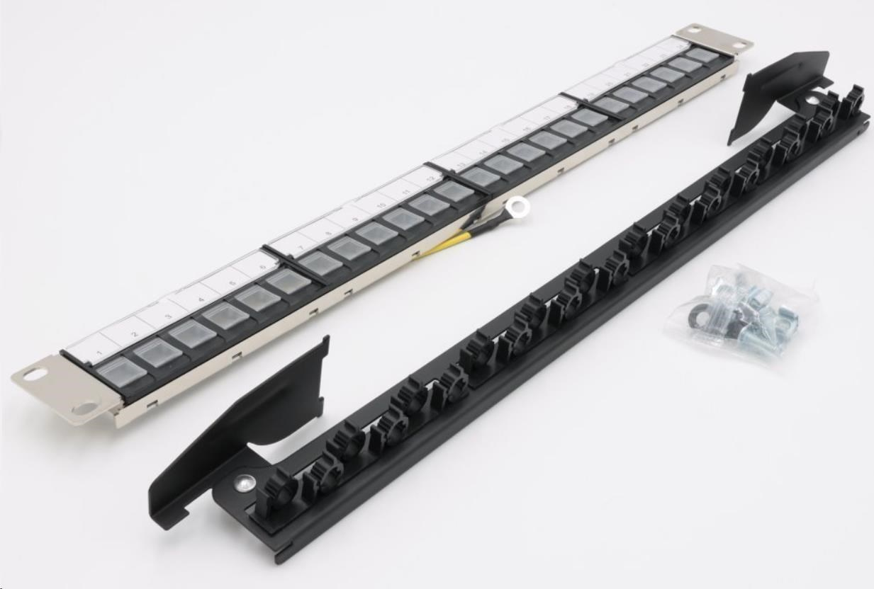 Vrátane montážnej sady M6 pre stojany (4x skrutka + 4x matica + 4x podložka)Kovový patch panel s jedinečným spôsobom inštalácie kľúčových kameňov s uzdou. Predný panel je pokrytý štyrmi plastmi so 4 otvormi, je možné osadiť 4 moduly so 6 pozíciami lichobežníkového skreslenia. Poloha uzemňovacieho kábla a značky