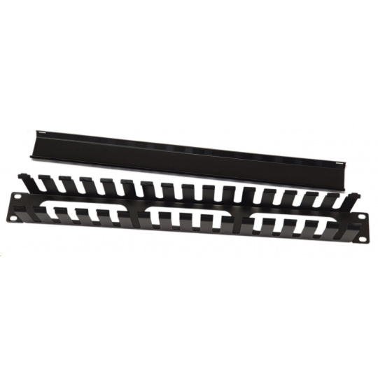 Celokovový panel na viazanie káblov vhodný na voľnú montáž veľkého množstva káblov. Vyrába sa vo verzii 1U a je vybavený krytom káblov. Výška: 1U Profil kábla: 40 x 70 mm Farba: čierna..