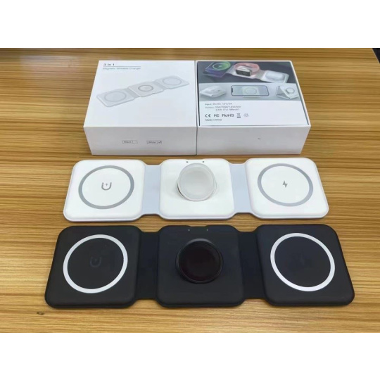 Vysoko kvalitná výkonná bezdrôtová skladacia 3 v 1 s podporou Apple MagSafe, iWatch, AirPods, ale aj väčšiny telefónov alebo príslušenstva iných značiek podporujúcich bezdrôtové QI nabíjanie. Unikátne skladacie riešenie vám umožňuje zvoliť si použitie iba ako podložku pre jedno zariadenie, alebo stojan či nabíjačku rozložíte a nabíjate až tri zariadenia. Nabíjačku je možné opäť jednoducho zložiť do malej kompaktné podoby a v prípade potreby vložiť do vrecka a jednoducho vziať kamkoľvek budete potrebovať.