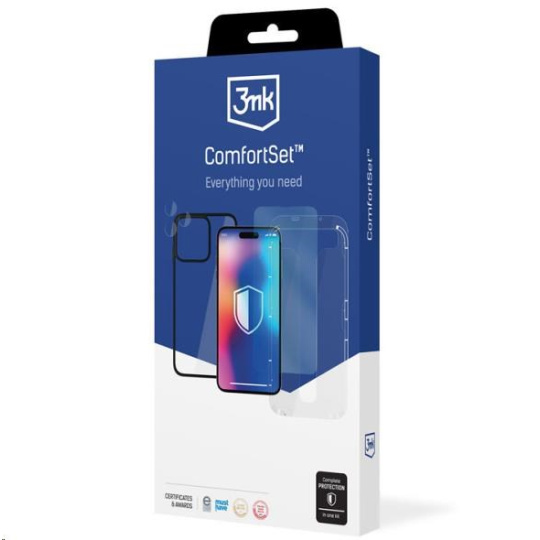 Comfort Set 4in1 je profesionálna sada na samostatné prevedenie komplexnej ochrany chytrého telefónu. Obsahuje vlajkové produkty 3mk Protection: obal Satin Armor Case+, hybridné sklo Resilient Glass na objektív fotoaparátu Lens Protection, tvrdené sklo na displej telefónu s tvrdosťou 9H a jednorazový aplikátor na inštaláciu skla. Vďaka sade Comfort Set 4in1 ochránite svoj chytrý telefón, aniž by ste museli niekam chodiť. Navyše sa nebudete ani príliš trápiť s inštaláciou skla – je to veľmi jednoduché a zvládnete to za niekoľko minút!