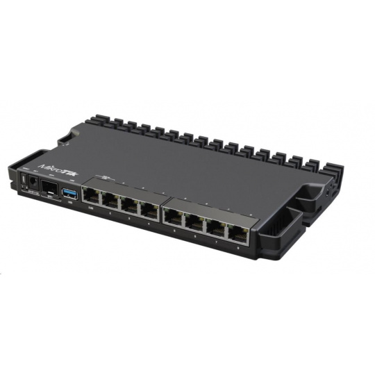 RB5009 je úplne nový rad RouterBOARD, ktorý je vybavený pasívnym chladením, inovatívnym až futuristickým dizajnom a vysokým výkonom (o 60-90 % vyšším ako RB4011) vďaka 64-bitovej architektúre procesora ARM s taktom 1400 MHz, 1 GB DDR4 RAM a 1 GB úložiska NAND. Smerovač má 7x gigabitovú sieť LAN, 1x 2.5Gbit LAN s PoE (24-57 VDC, 802.3af/at), ale aj prostredníctvom DC konektora alebo svorkovnice na ľavej strane, 1x SFP+ slot a 1x USB 3.0. Vďaka konštrukcii kovového šasi možno smerovač namontovať do 19" stojana s voliteľným príslušenstvom. Vďaka priestorovo úsporným rozmerom sa do výšky 1U zmestia až 4 routre naraz!