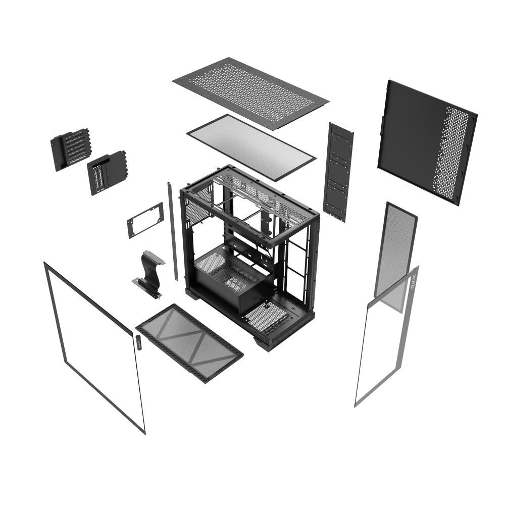 Skriňa INVADER X umožňuje jednoduchú inštaláciu základných dosiek s konektormi na zadnej strane. Využíva úplne nový dizajn s integrovaným kanálom pre káble, obsahuje päť predinštalovaných káblových svoriek XPG a ponecháva 36mm priestor na usporiadanie káblov. Vo skrini je tak jednoduchšie usporiadať káble a je k dispozícii širší priestor na inštaláciu základnej dosky.