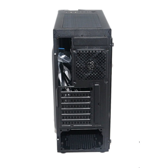 Počítačová skriňa so skleneným bočným krytom a RGB podsvietením panelu.