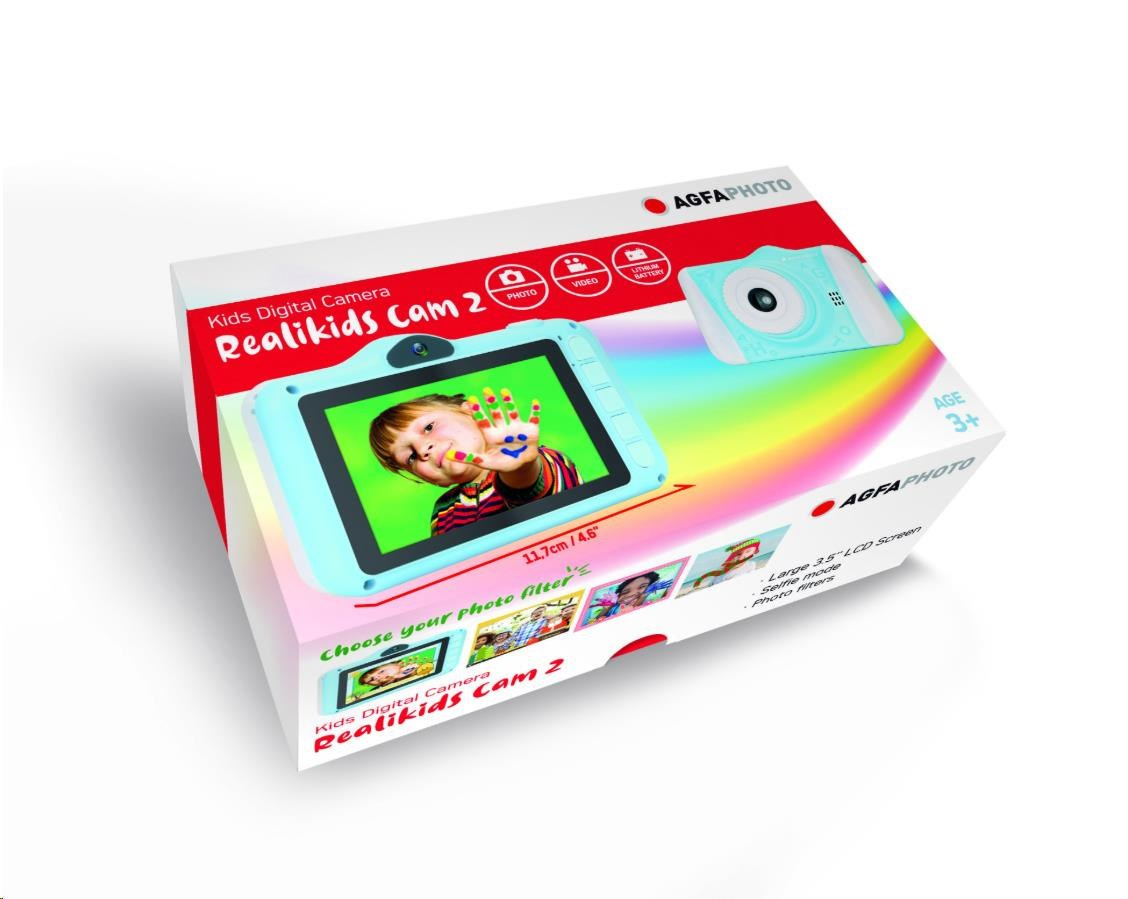 Realikids Cam 2 je ideálny digitálny fotoaparát pre deti. Jeho CMOS snímač umožňuje robiť nádherné fotografie a videá v HD. Má 3,5" LCD displej, na ktorom si môžete prezrieť vaše fotografie. Má tiež port pre micro SD karty až do 32 GB (nie je súčasťou balenia). Jeho zábavný a ergonomický dizajn zaručuje dokonalé uchopenie a poteší každého malého fotografa.