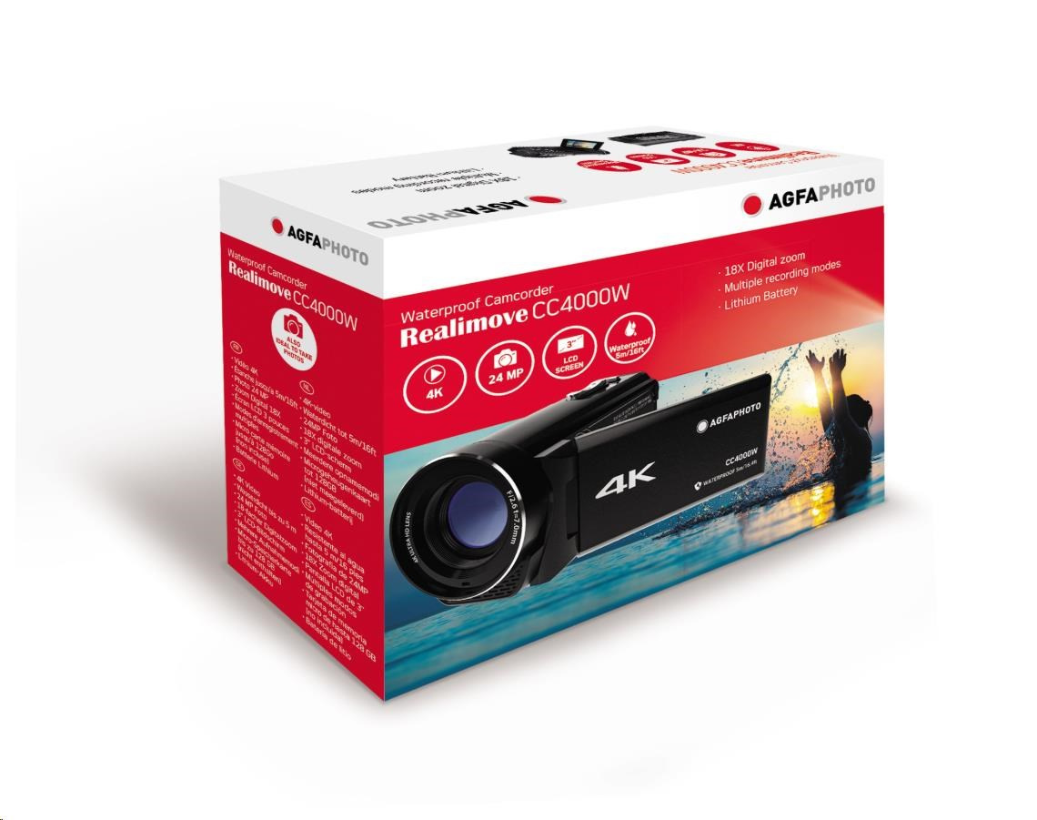 Ako prší, tak si užívate šnorchlovanie či potápanie, videokamera CC4000W bude ľahko sledovať každý váš pohyb. Je vodotesná až do 5 m a má rôzne režimy, vrátane detekcie tváre a samospúšte. Bodové zaostrovanie si môžete vychutnávať na nekonečno. To znamená, že získate presne vyladené zaostrenie na vzdialenosť pri mnohých záberoch. Predstavte si, že zachytíte neuveriteľné zábery ohniska, vzdialeného vodopádu, lode na otvorenom mori alebo vašich najlepších kamarátov, ako tancujú uličkou po tom, čo si vyslovili svoj sľub!