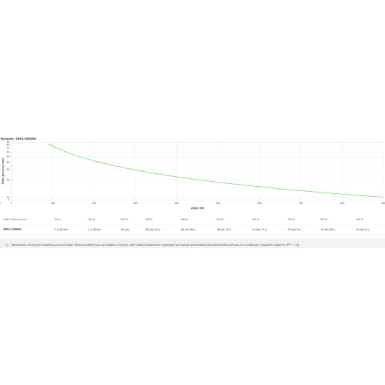 | Doba provozu pro zátěž WMin.–max.: 90-900 W | 10min 6s |