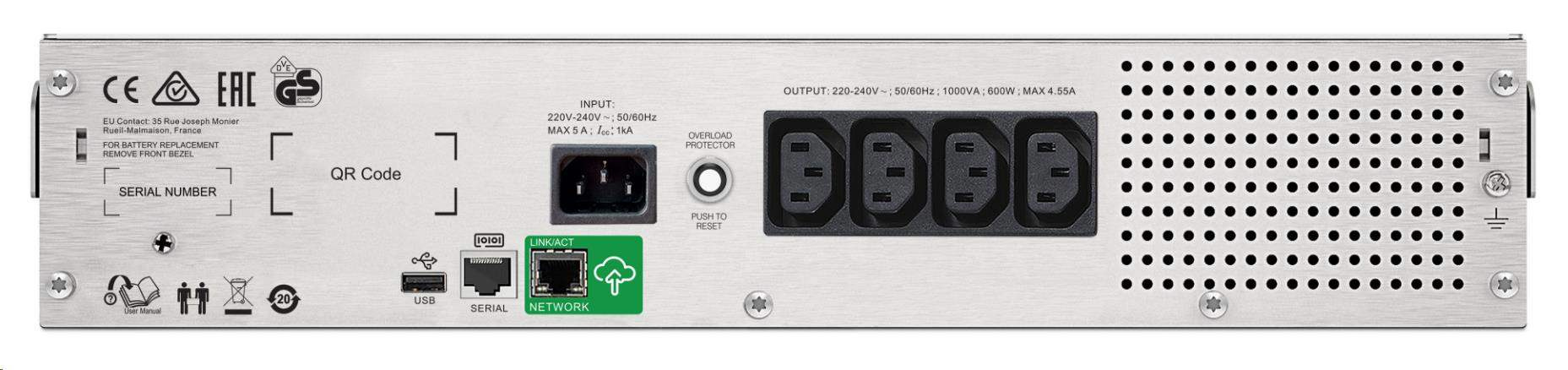 APC Smart-UPS C 1000VA LCD RM 2U 230V so SmartConnect (600W)