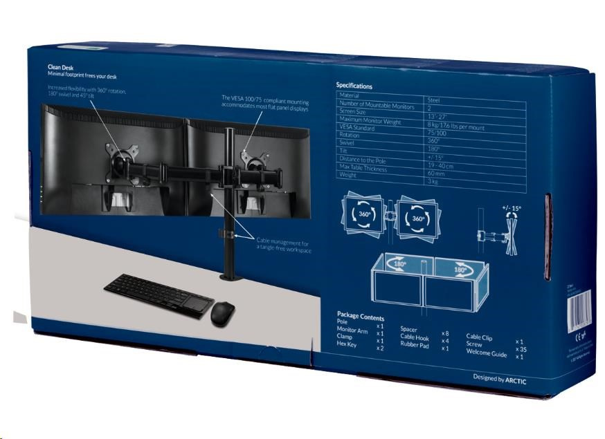 Držiak ARCTIC pre 2 monitory Z2 Basic