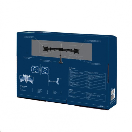 Stolný držiak ARCTIC Z2 (Gen3) pre 2x LCD do 34", nosnosť 2x15 kg, 4x USB HUB, čierny