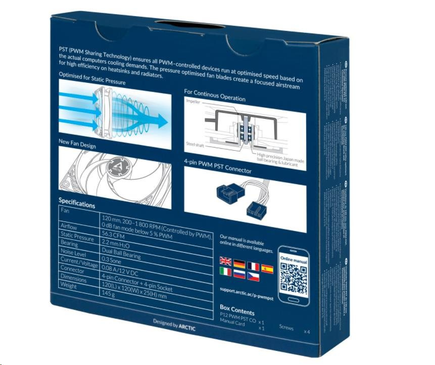 ARCTIC ventilátor P12 PWM PST CO 120mm, 4-pinový, PWM, 12V