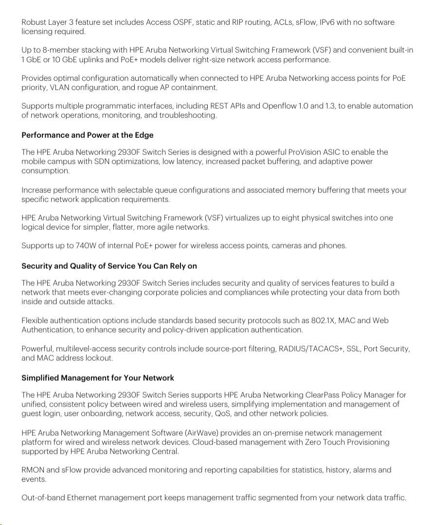 Aruba 2930F 48G PoE+ 4SFP+ Swch RENEW JL256A.