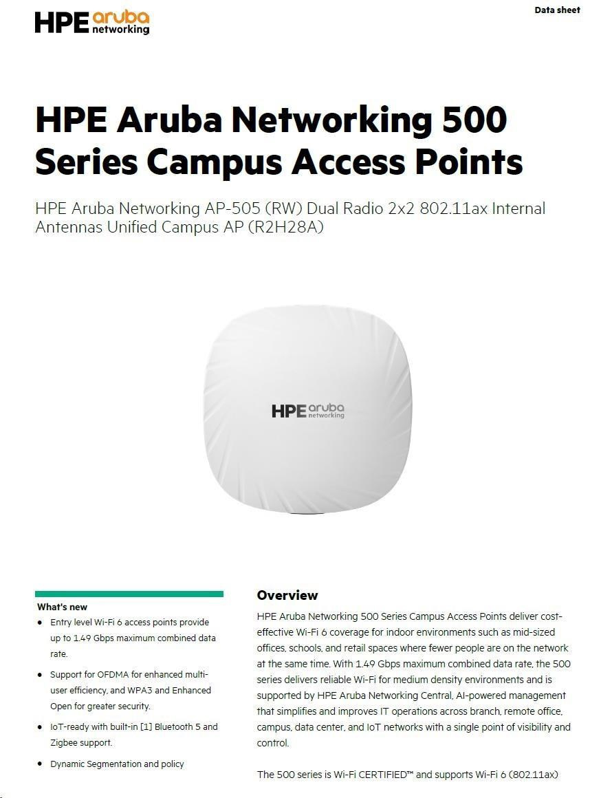 Odkaz na web výrobcu: https://www.arubanetworks.com/assets/ds/DS_AP500Series.pdf