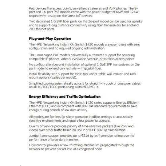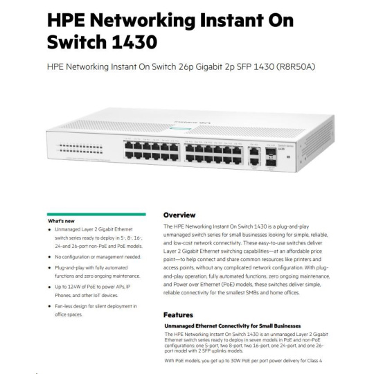 HPE Networking Instant On Switch 26p Gigabit 2p SFP 1430 R8R50A