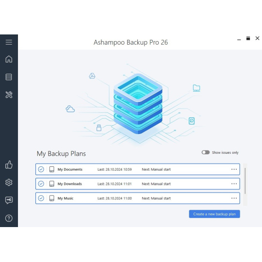Naše zálohovacie riešenie je vhodné pre každého, od začiatočníkov až po špecialistov na bezpečnosť dát. Preto sme naše záložné plány urobili čo najflexibilnejšie a najuniverzálnejšie! Nové predvoľby uložia vaše údaje len niekoľkými kliknutiami. Chcete zálohovať iba dokumenty alebo celý systém? Chcete uložiť e-maily, kontakty alebo údaje prehliadača? Alebo uprednostňujete sofistikovanejší prístup s vlastnými plánmi špeciálne prispôsobenými vašim potrebám? Aj veľmi sofistikované záložné plány vyžadujú len niekoľko kliknutí. Jednoduché alebo sofistikované, vytváranie záložných plánov je hračka s novým Ashampoo Backup Pro!