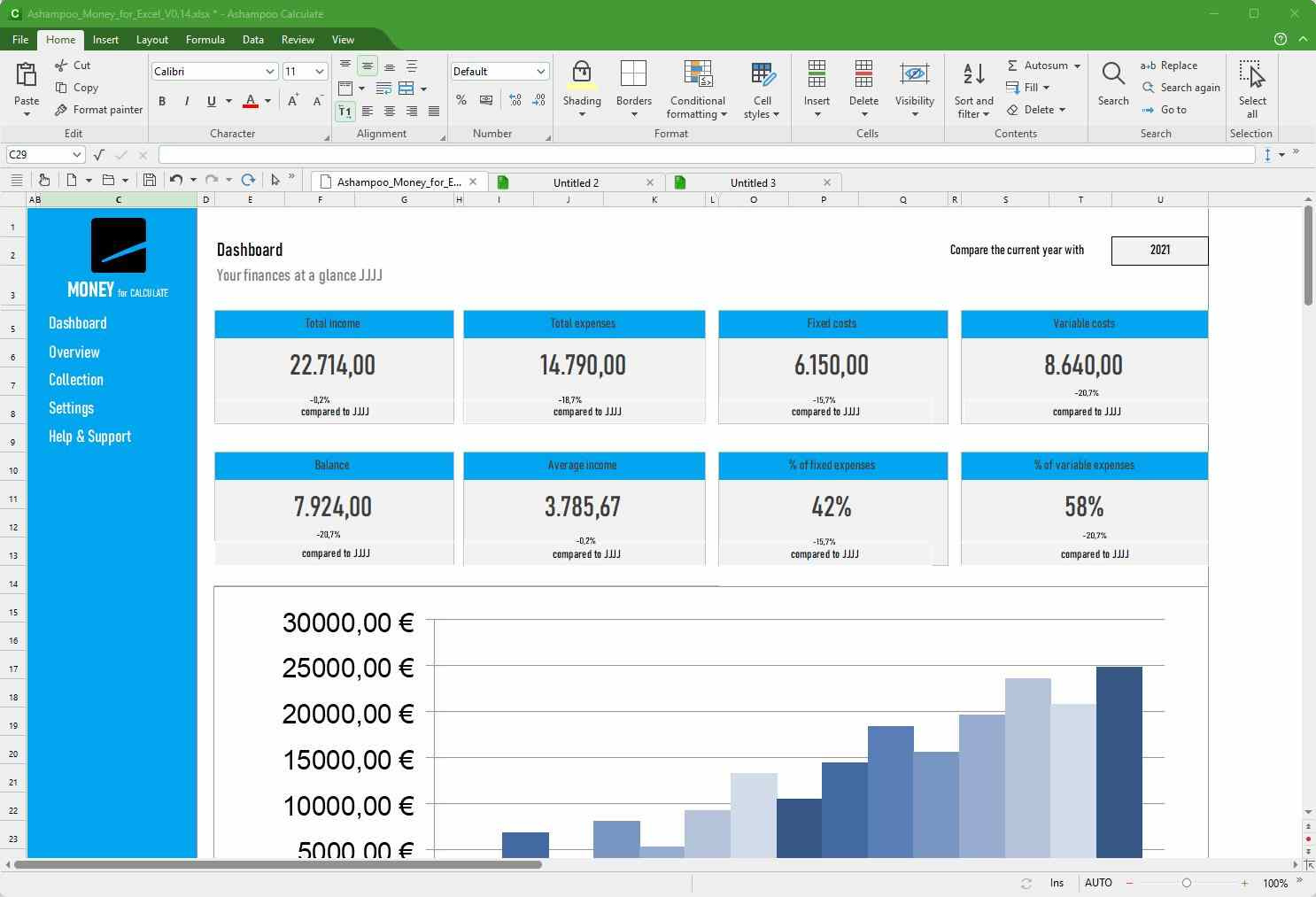 Vytváranie zložitých výpočtov a grafov v tabuľkách môže byť náročné: Výpočet z Ashampoo Office 9 je zábavný a pútavý. Od jednoduchých plánov až po zložitú firemnú finančnú dokumentáciu, Calculate je náhradou za Excel so všetkými funkciami a bez nezrovnalostí. Ponúka okamžité zvýraznenie syntaxe a overenie vzorcov, ktoré vám pomôžu odhaliť chyby v priebehu niekoľkých sekúnd. S viac ako 350 výpočtami, jednoduchou manipuláciou s tabuľkami a podporou obrovských údajových hárkov s miliónmi položiek je Calculate 9 ideálny pre akúkoľvek tabuľkovú úlohu. Funkcie na profesionálnej úrovni, ako sú gramofóny, uspokoja aj tých najpokročilejších používateľov. A tlač hotových tabuliek je veľmi jednoduchá s novým ukážkou zlomu strany. Vypočítať 9 používa formát súboru XLSX, rovnaký formát, aký používa Microsoft Excel!