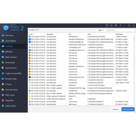 Informácie o používaní otvorených súborov a priečinkov sa neustále zhromažďujú bez vášho vedomia. Nechceli by ste vedieť, koľko informácií o vašej práci zaznamenáva váš počítač? Ashampoo Privacy Inspector vám to povie! Zistite, čo sa presne deje v zákulisí pri používaní počítača, pomocou filtrov zúžte výsledky a podľa potreby ich odstráňte!