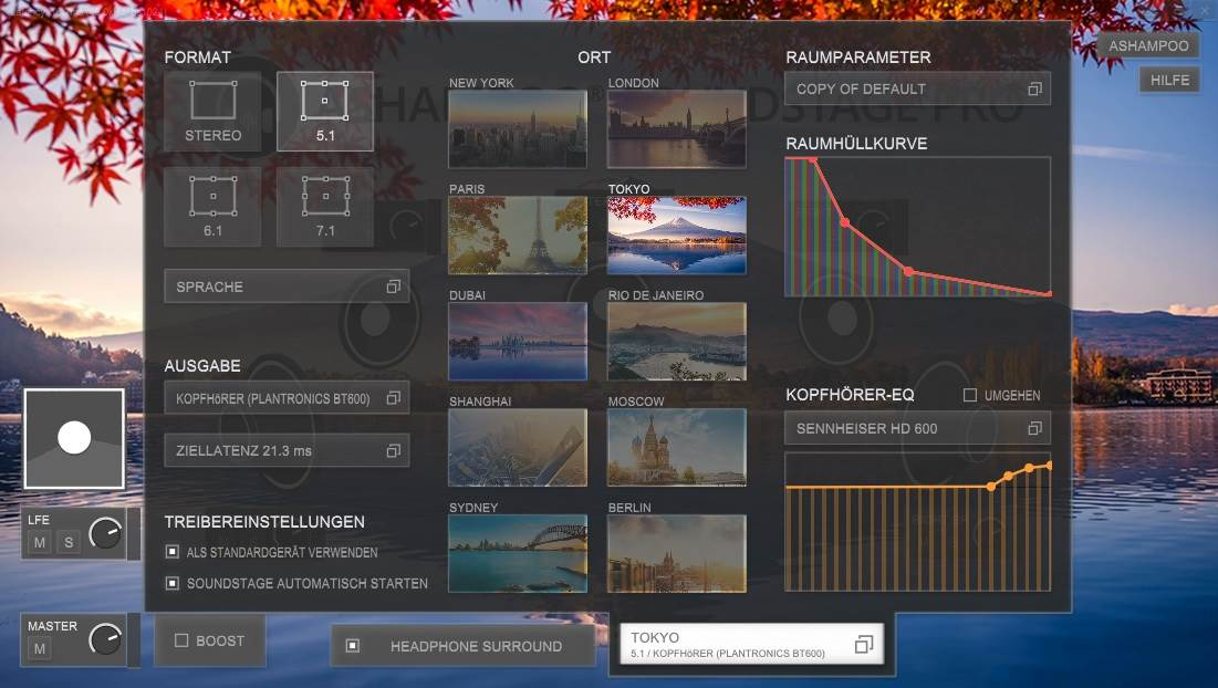 Program vám ponúka desať rôznych audio miest, z ktorých si môžete vybrať! Tieto predvoľby vytvorili odborníci v profesionálnych nahrávacích štúdiách. Zažite celú škálu verného priestorového zvuku! Individuálne nastavenie hlasitosti pre každý virtuálny reproduktor je samozrejmosťou!