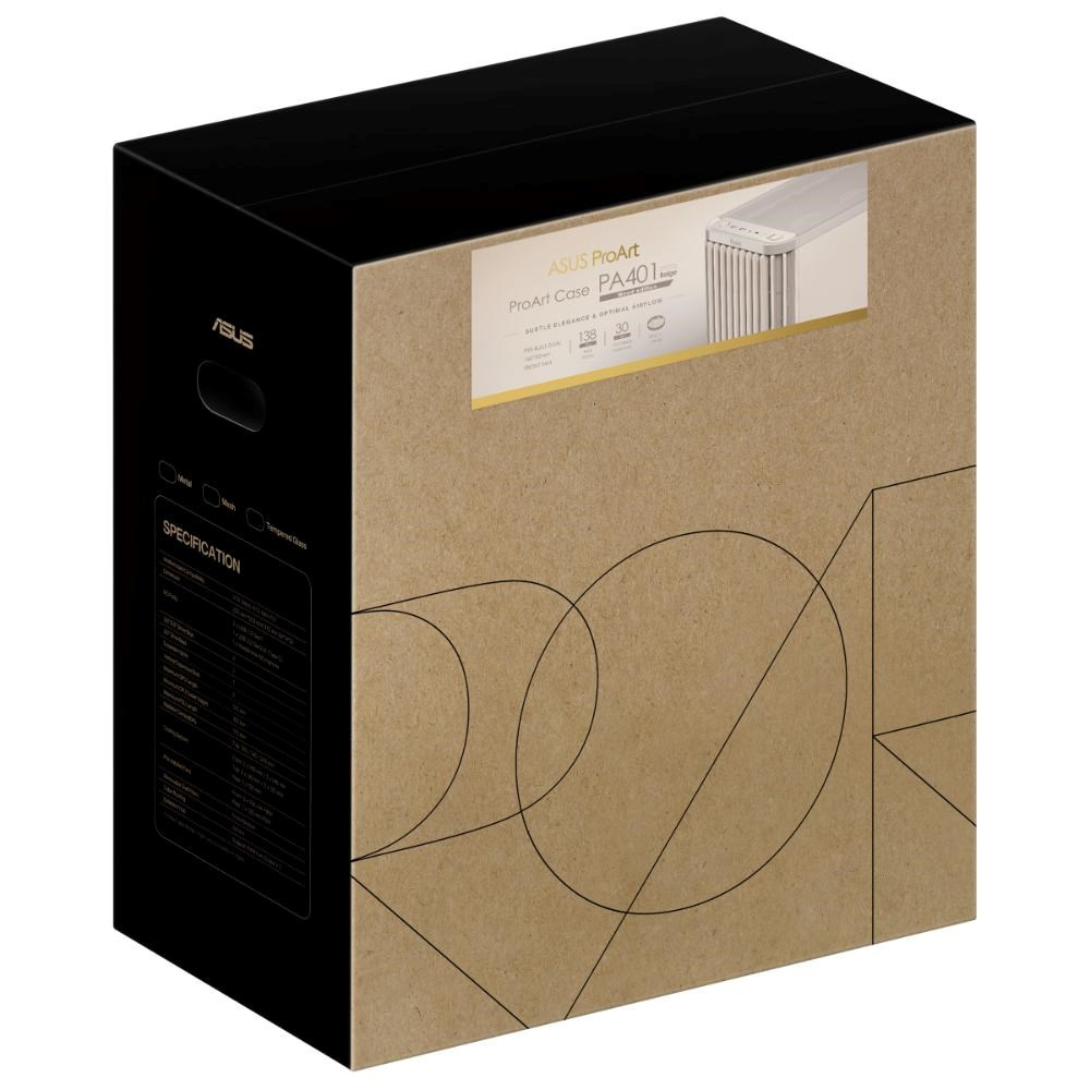ASUS case PROART PA401 WOOD MESH PWM, ATX, 2x 160mm Fan, 1x 120mm Fan, Fan Hub, béžová