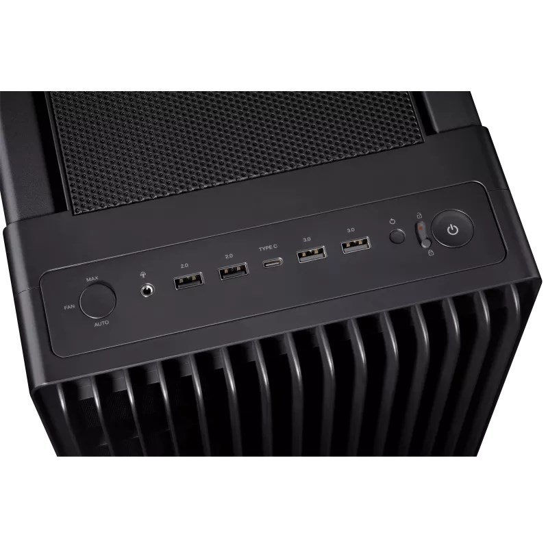 - Vynikajúce prúdenie vzduchu: 15,5 mm mriežka na prednom paneli so 45% pórovitosťou, dva extra silné predné ventilátory 200 x 38 mm pre maximálne nasávanie vzduchu a 140 mm zadný výfukový ventilátor