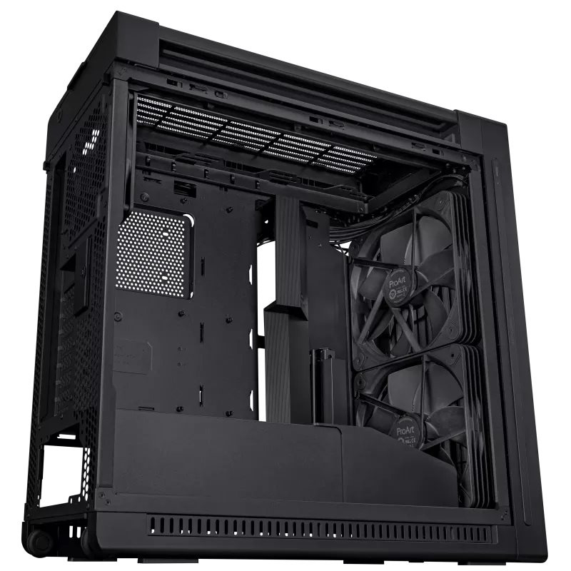 Počítačová skrinka ProArt PA602 E-ATX, podpora chladiča 420 mm, jeden 140 mm a dva 200 mm predinštalované systémové ventilátory, IR indikátor prachu na prednom paneli, západka zámku napájania, montáž PCIe bez použitia náradia, podpora USB 20 Gb/s