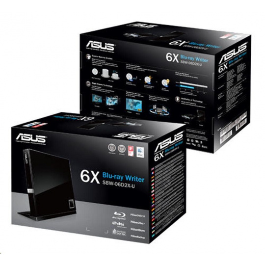 ASUS SBW-06D2X-U - prenosná 6X prenosná napaľovačka Blu-ray slim s podporou M-DISC na doživotné zálohovanie dát a kompatibilitou so systémami Windows a Mac OS