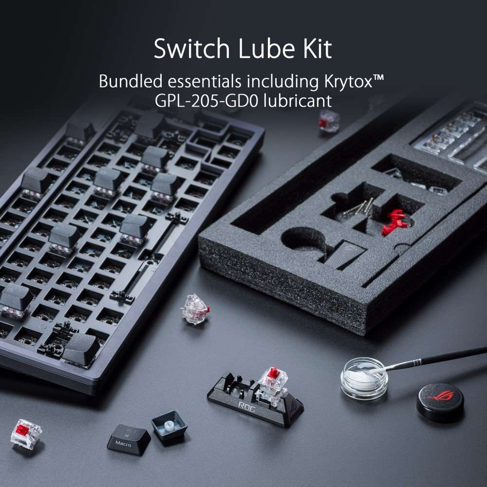 - Vylepšené možnosti písania: Predom namazaný stabilizátor klávesnice vytvára menšie trenie pre plynulejšie stláčanie kľáv a stabilitu pre dlhšie klávesy; odolné klávesy ROG PBT doubleshot ponúkajú prémiový pocit
