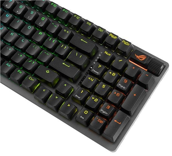 - Vylepšené možnosti písania: Predmazaané stabilizátory klávesnice produkujú menšie trenie pre hladšie stlačenie kláves a stabilitu pre dlhšie klávesy; odolné krytky kláves ROG PBT doubleshot alebo krytky kláves ABS s UV vrstvou ponúkajú prvotriedny pocit a odolnosť voči lesku