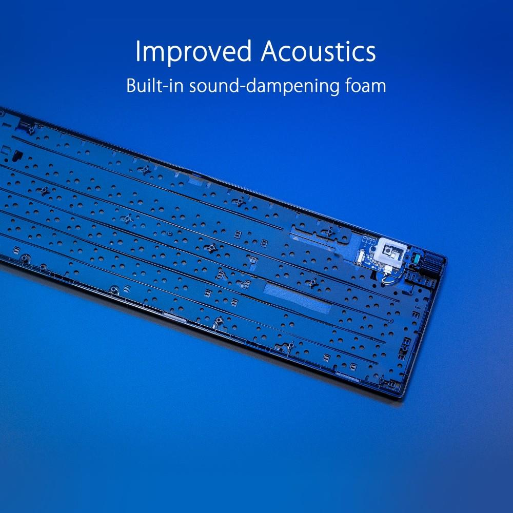 - Mechanické spínače ROG NX Red: Predpripravené lineárne spínače NX Snow a klikové spínače ROG NX Storm s dizajnom stopky na zvýšenie stability úderu a ladené na skvelú akustiku