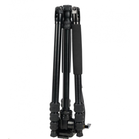Vďaka osvedčenej funkcii naklonenia nôh o 180° je tento statív v zloženom stave taký kompaktný, že sa zmestí do každého batohu. V zloženom stave meria Traveler VA len 46,5 cm. Guľová hlava je úplne uzavretá.