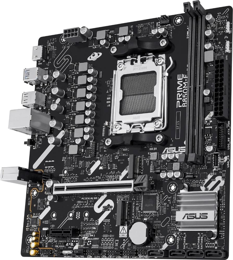 Na základe čipovej sady AMD B850 je základná doska ASUS PRIME B850M-F navrhnutá tak, aby pojala procesory AMD Ryzen 7000/8000/9000 na sokete AM5. Je ideálna na skladanie herných alebo multimediálnych konfigurácií. Lacnejšia ako čipová sada X870, podporuje DDR5, grafické karty PCI-Express 5.0 a PCIe 5.0 M.2 SSD.