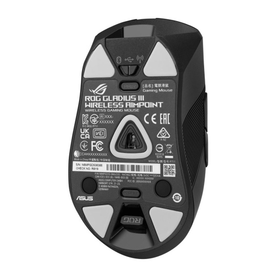 - Push-Fit Switch Socket II: Vymeniteľný dizajn spínača pre jednoduché prispôsobenie; Gladius III Wireless AimPoint obsahuje mikrospínače ROG a je kompatibilný s ďalšími 3pinovými mechanickými a 5pinovými optickými mikrospínačmi