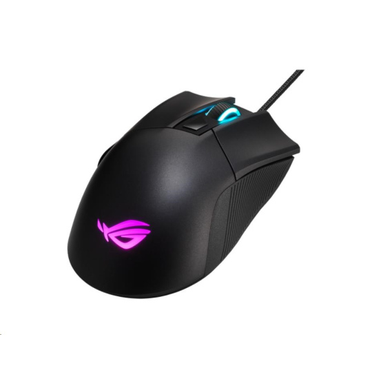 - Klasická ergonómia ROG Gladius s diskrétnymi ľavými a pravými tlačidlami, ľahkou konštrukciou a odolnými protišmykovými bočnými úchytmi s vyleptaným ikonickým totemom ROG
