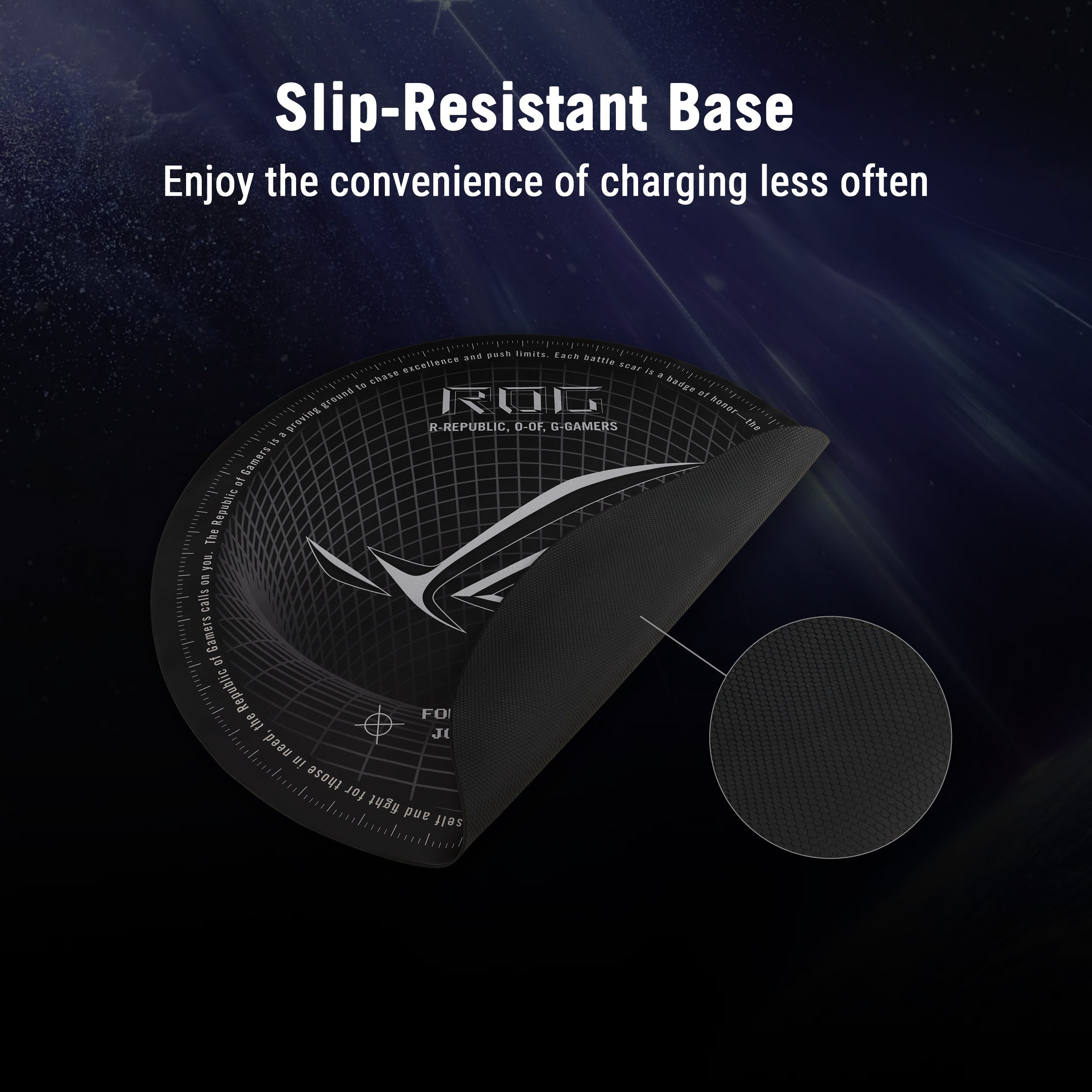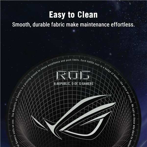 ROG Cosmic Mat II je herní podložka, která kombinuje design inspirovaný hvězdnou oblohou s ikonickými prvky ROG a vytváří tak dojem hloubky a vrstevnatosti připomínající rozlehlý vesmír. Je vyrobena z jerseyové tkaniny, snadno se čistí a udržuje, a díky protiskluzové gumové základně zajišťuje stabilitu a odolnost. Je to skvělá volba pro hráče, kteří hledají styl a funkčnost.
