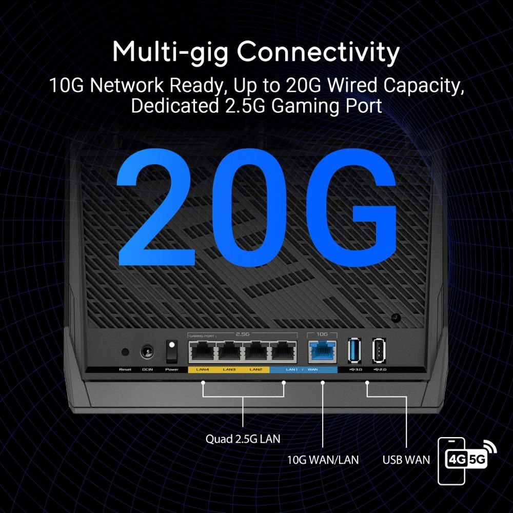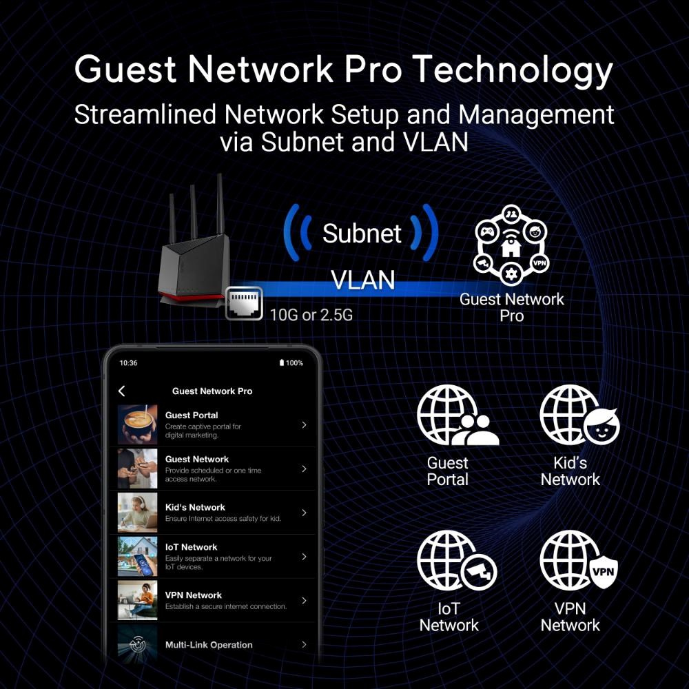 | Zabezpečenie | AiProtection VPN WPA3 Personal, WPA2 Personal, WPA Personal, WPA Enterprise, WPA2 Enterprise, WPA3 Enterprise, Open System & OWE WPS Let's Encrypt DNS-over-TLS SSH Bezpečnostné skenovanie Firewall - Maximálny filter kľúčových slov brány firewall : 64 - Maximálny filter sieťových služieb brány firewall : 32 - Maximálny filter URL brány firewall : 64 |