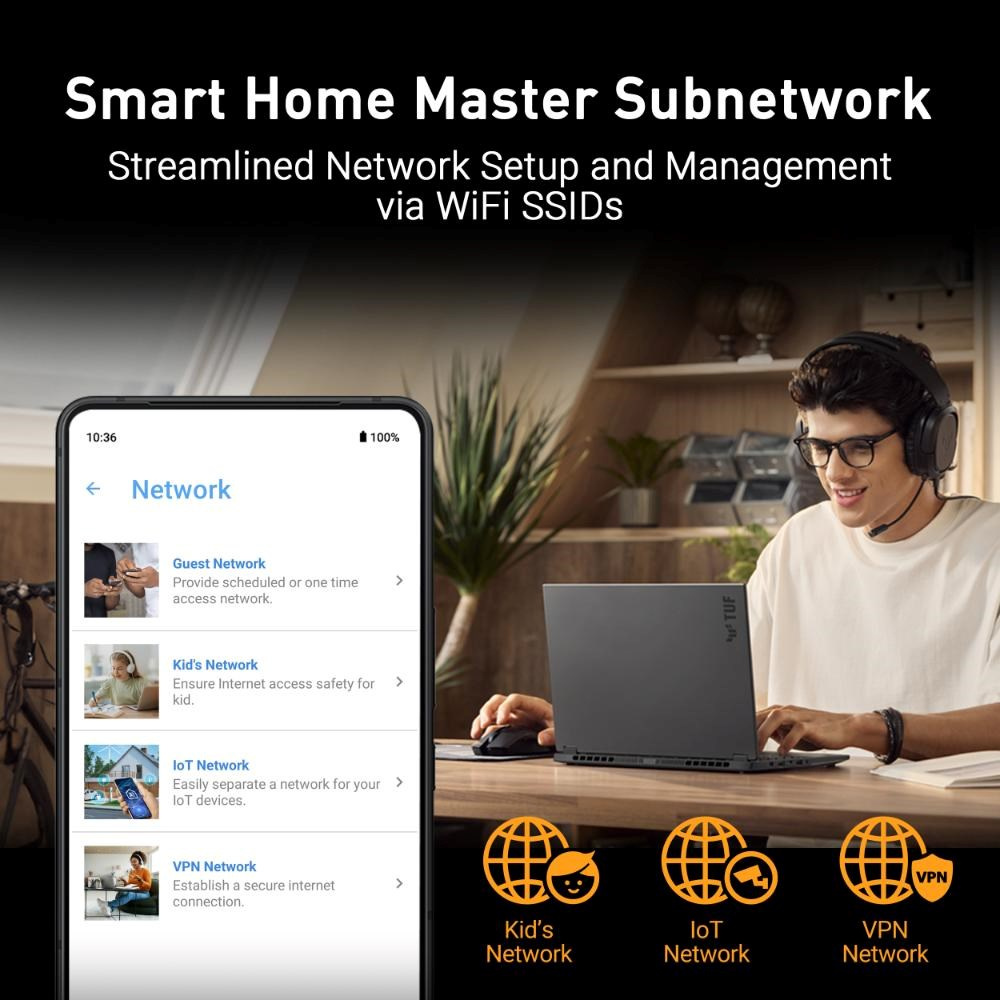 - Komplexný bezpečnostný systém – Je vybavený najnovšími bezpečnostnými funkciami ASUS, ktoré zabezpečujú robustnú ochranu pred sieťovými hrozbami.