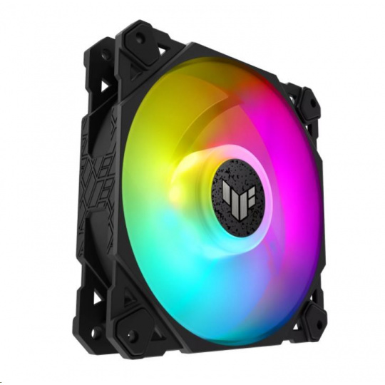 TUF Gaming TF120 ARGB chassis fan delivers high performance and durability in a rainbow of color.