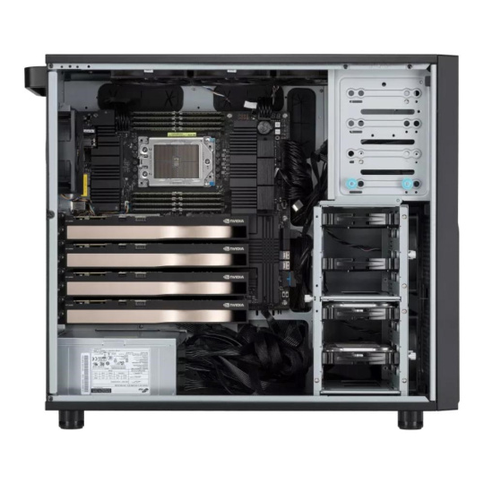 - Podporuje až štyri grafické karty NVIDIA Quadro RTX pre výkonné 2D/3D vykresľovanie a pracovnú záťaž umelej inteligencie.
