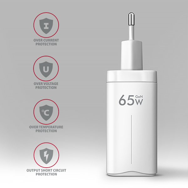 Pokročilý systém ochrany na výstupe nabíjacieho adaptéra chráni nabité zariadenie pred poškodením. Funkcia nabíjačky tiež zaisťuje, že nabíjané zariadenie je rozpoznané a je zvolená optimálna rýchlosť a priebeh nabíjania.