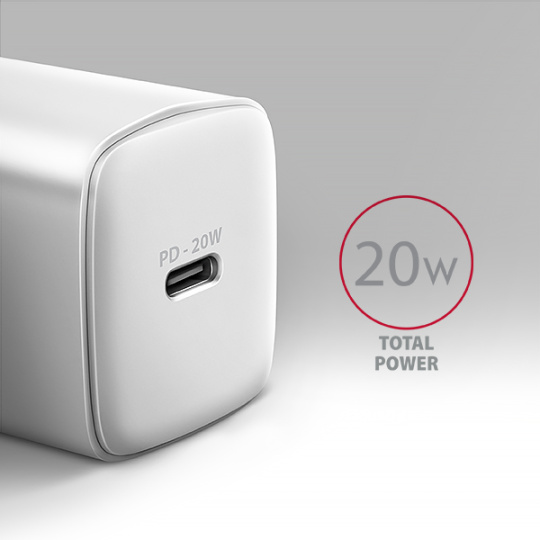 AXAGON ACU-PD20W, nabíjačka do siete 20W, 1x port USB-C, PD3.0/PPS/QC4+/AFC/Apple, biela
