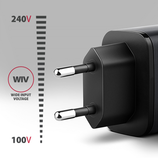 • Wide Input Voltage - funkce širokého rozsahu vstupního napětí, chrání adaptér proti podpětí a přepětí na vstupu a umožní použití více "národních napájecích standardů".