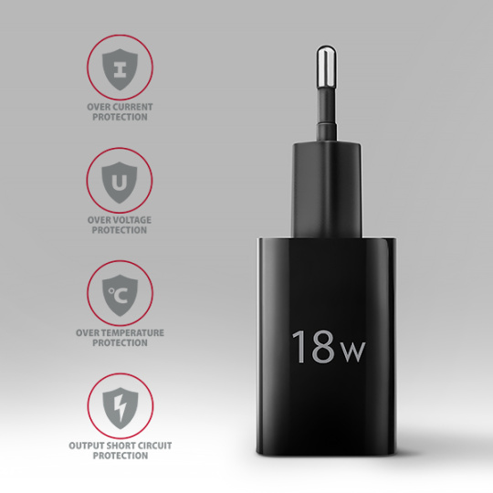Nabíječka je vybavená výstupem Quick Charge 3.0 USB typu A, čo umožňuje rýchle nabíjení smartphonů a tabletů výkonem až 18W. Adaptér je také kompatibilní s ďalšími štandardy rychlého nabíjení telefonů, ako sú Apple iPhone, iPad, Samsung, Huawei, Honor, Xiaomi, Motorola a dalších.