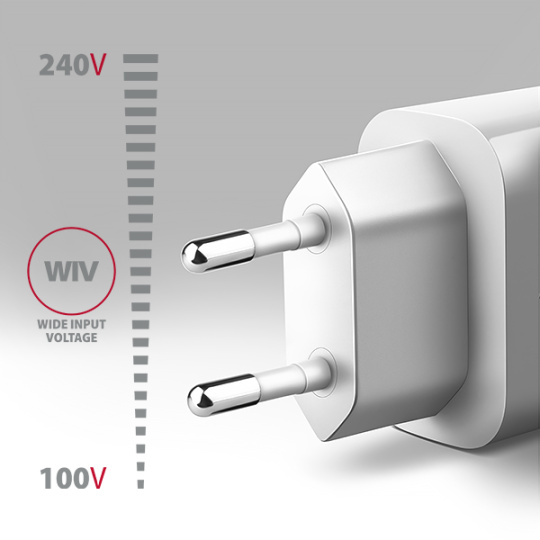 • Wide Input Voltage - funkcia širokého rozsahu vstupního napětí, chrání adaptér proti podpětí a prepětí na vstupu a umožní použitie viac "národních napájecích standardů".