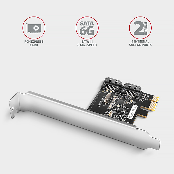 PCI-Express radič AXAGON PCES-SJ2 rozširuje stolný počítač o dva SATA porty s prenosovou rýchlosťou až 6 Gb/s.