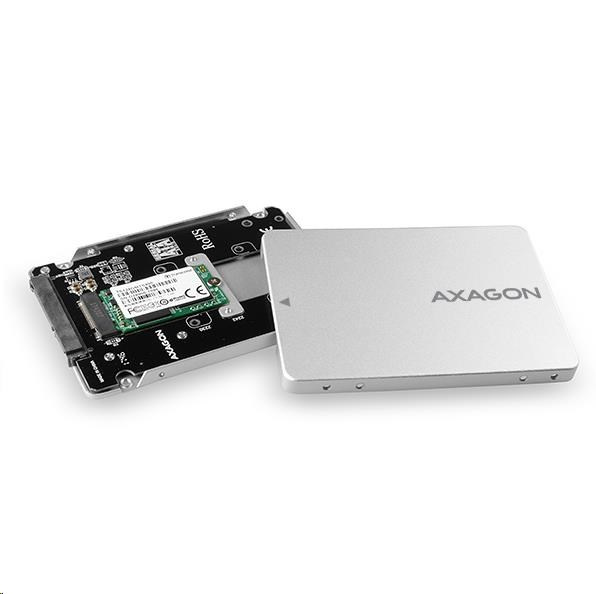 AXAGON RSS-M2SD, SATA - M.2 SATA SSD, interné 2.5" box ALU, strieborný