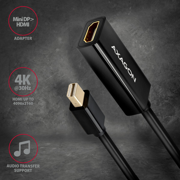 AXAGON RVDM-HI14N, Mini DisplayPort -> HDMI 1.4 redukcia/adaptér, 4K/30Hz