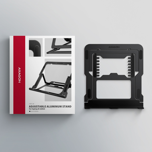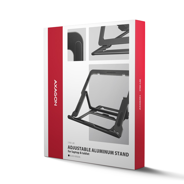 AXAGON STND-LAB, hliníkový stojan pre notebooky 10"-17.3", nastaviteľná výška, čierny