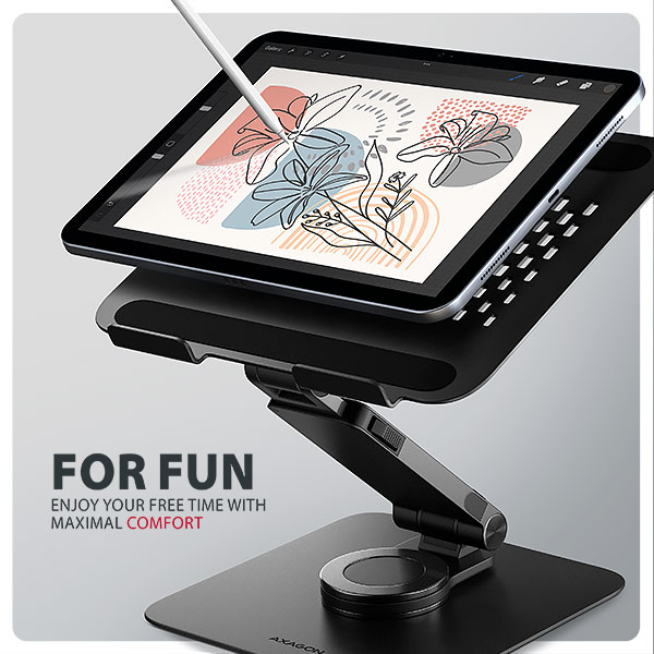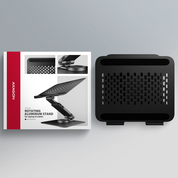 AXAGON STND-LRB, hliníkový stojan pre notebooky 10"-17.3" s nastaviteľnou výškou, uhlom a 360° rotáciou, čierny