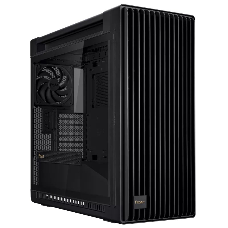Počítačová skriňa ProArt PA602 E-ATX, podpora chladiča 420 mm, jeden 140 mm a dva 200 mm predinštalované systémové ventilátory, IR indikátor prachu na prednom paneli, západka zámku napájania, montáž PCIe bez použitia náradia, podpora USB 20 Gb/s