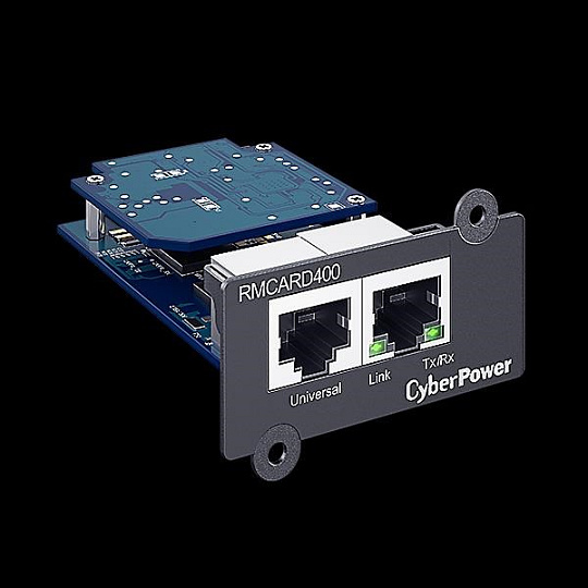 CyberPower RMCARD400 je voliteľným doplnkom pre správu konkrétnej UPS rady CyberPower. Vložením karty do sieťového slotu SNMP / HTTP na UPS môžu používatelia vzdialene monitorovať a riadiť zariadenie v kancelárii, serverovni alebo dátovom centre prostredníctvom štandardných webových prehliadačov, systému správy siete (NMS) alebo rozhrania príkazového riadka (SSH a Telnet) v ich sieti. Môžu tiež vykonávať vzdialenú správu vrátane naplánovaného vypnutia, zapnutia a reštartu. Keď dôjde k problémom s napájaním, správca bude okamžite informovaný prostredníctvom e-mailu, SNMP a SMS správ. Použitím softvéru na automatické vypínanie zostávajú servery a pracovné stanice chránené pred stratou dát v dôsledku výpadku napájania. Záznam udalostí sleduje prevádzkovú históriu UPS. Vďaka možnosti výmeny batérií za prevádzky môže systém zostať zapnutý, aj keď servisný personál vykonáva údržbu alebo výmenu na mieste. Pomocou viacjazyčného rozhrania môžu používatelia zvoliť svoj preferovaný jazyk pre jednoduchú správu.