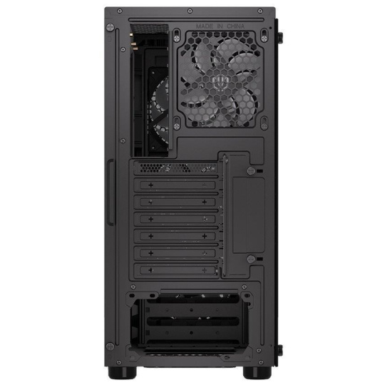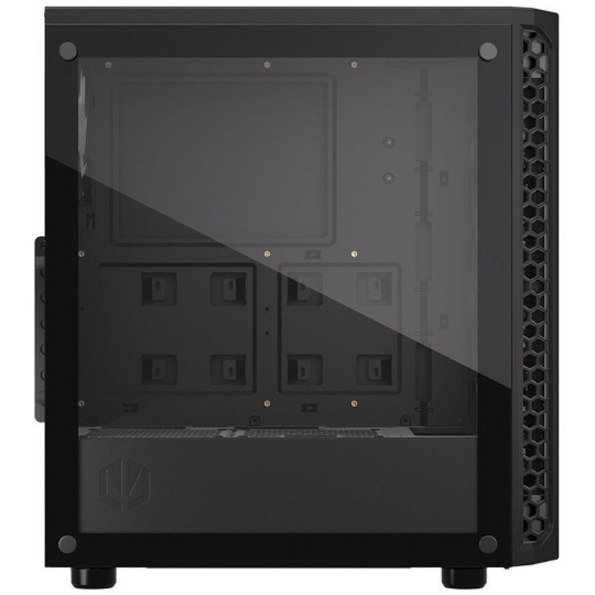 Skriňa formátu Middle Tower s priehľadnou bočnicou z tvrdeného skla ponúka dve 2,5" pozície pre SSD disky a dve 3,5" pozície pre pevné disky. Na hornej časti sa nachádza dva USB 3.0 porty, sluchátkový výstup a audio vstup pre mikrofón. Vybavená je štyrmi 120 mm ventilátormi s ARGB podsvietením, ktoré spolu s perforovaným čelným panelom zabezpečujú dostatočné prúdenie vzduchu. Dômyselné riešenie umožňuje pohodlné umiestnenie až 360 mm dlhého výmenníka vodného chladenia na prednej strane. V skrini je dostatok priestoru pre chladič CPU do výšky až 161 mm a grafickú kartu dlhú až 350 mm. Dodávaná je bez zdroja. Súčasťou je aj sada prachových filtrov.